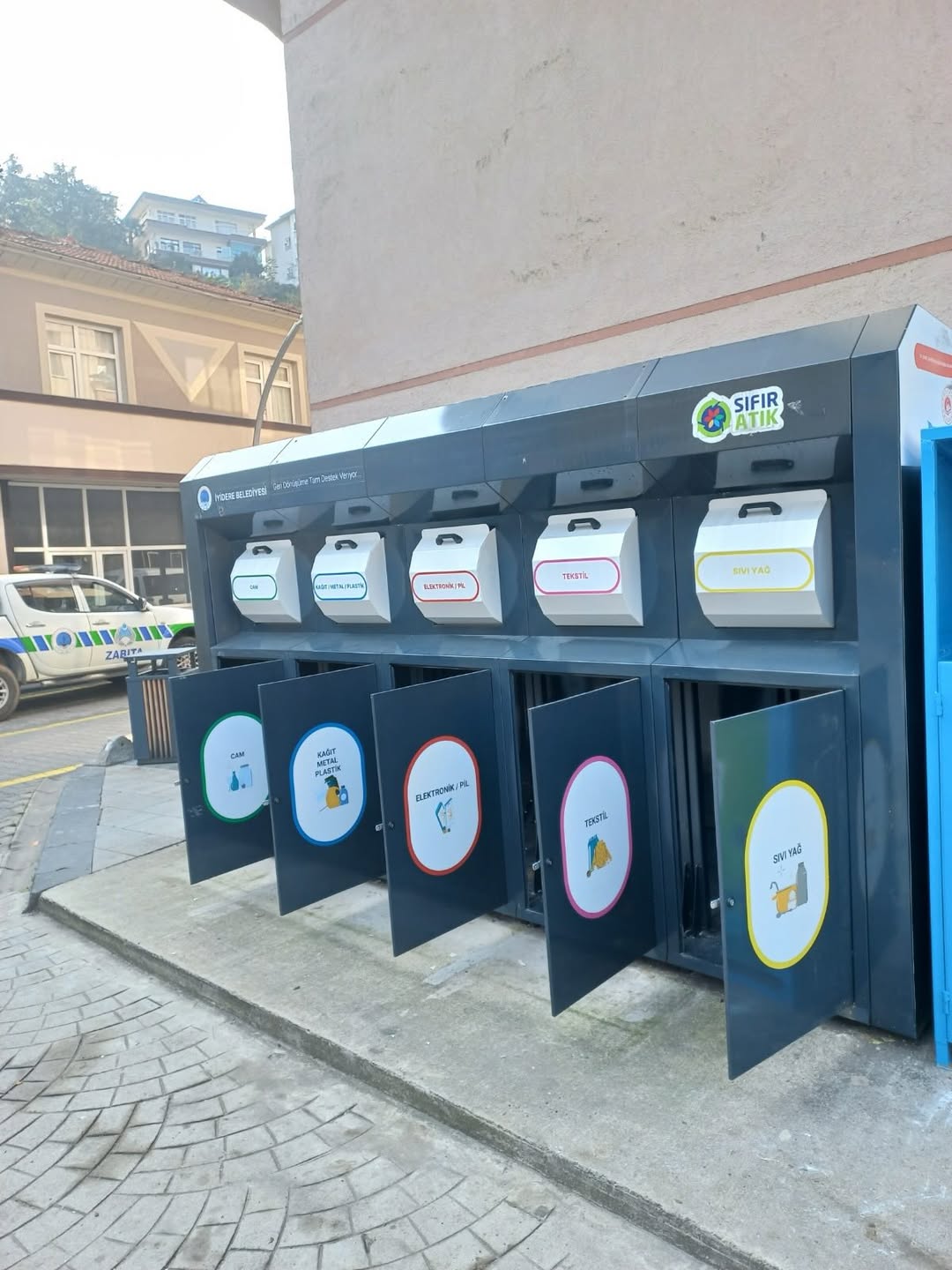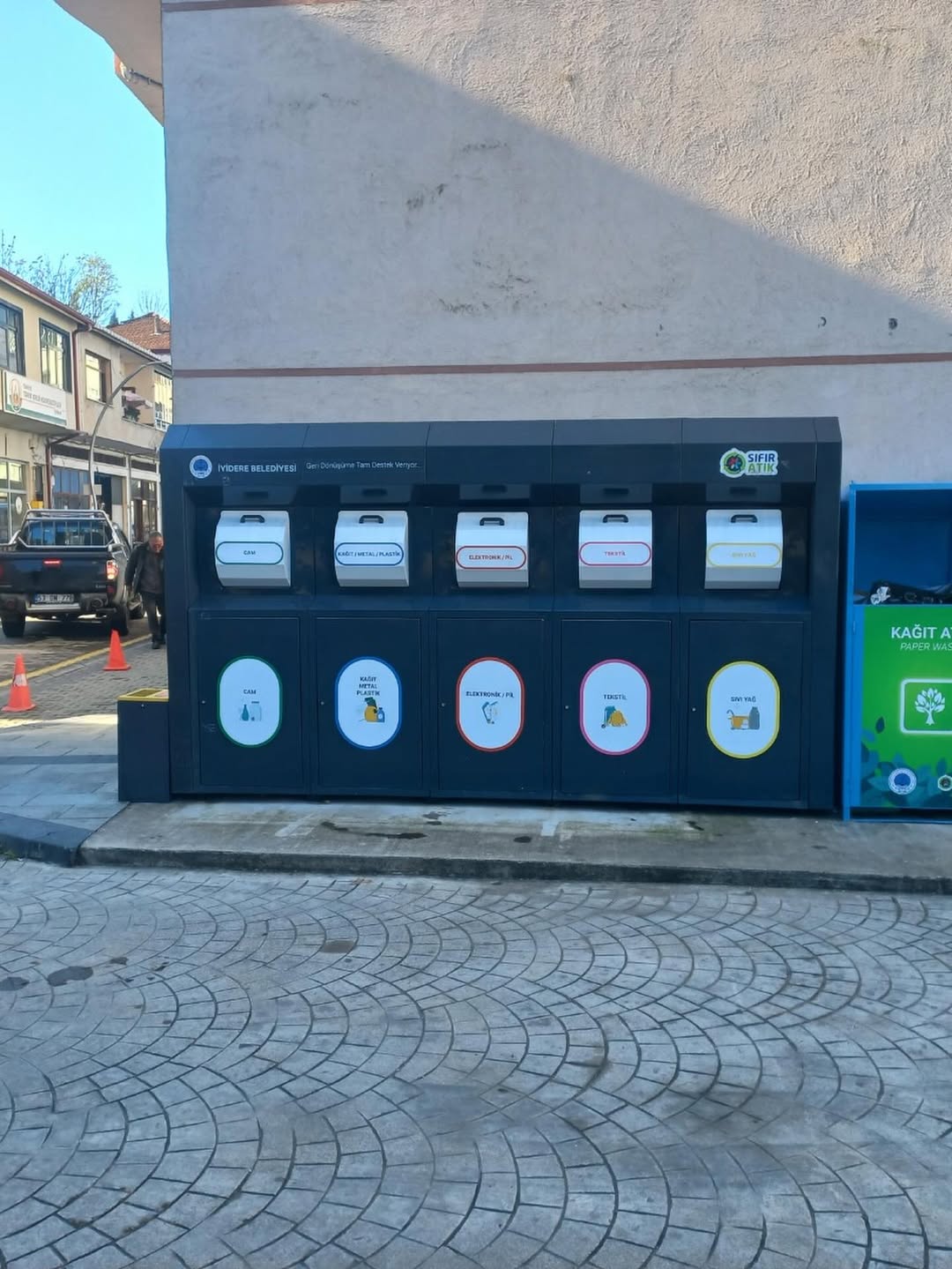 “Atıklar Dönüşür, İyidere Kazanır” sloganıyla yürüttüğümüz Sıfır Atık Projesi kapsamında; kağıt, karton, plastik, cam, metal, tekstil (elbise), pil, atık ilaç ve bitkisel atık yağların aynı noktada toplanmasına imkân sağlayan yeni nesil geri dönüşüm kutuları ve konteynerleri ilçemizin farklı noktalarına yerleştirilmiştir.